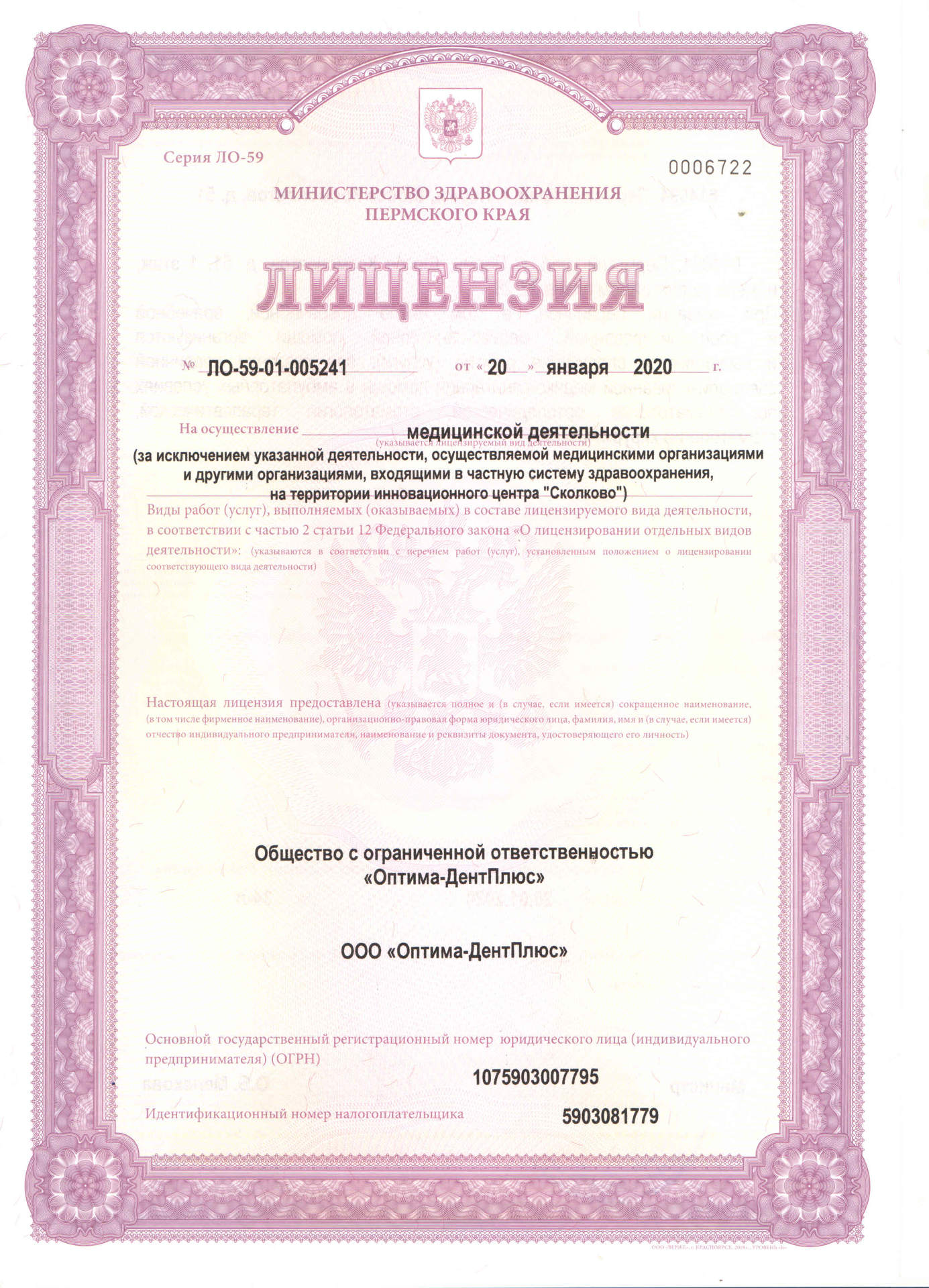 "Оптима-ДентПлюс» - это современный стоматологический кабинет, предоставляющий услуги в Перми более 10 лет, с новейшим оборудованием, опытными врачами, удобной транспортной и пешей доступностью, индивидуальным подходом к каждому пациенту и просто многопрофильная семейная стоматология с привлекательными и выгодными ценами.Специалисты «Оптима-ДентПлюс» – это команда профессионалов, которые знают и любят свое дело. Мы используем современные методики и материалы, что обеспечивает высокий уровень качества лечения, позволяет достигать максимально эффективныйрезультат.Доброжелательное отношение персонала, комфортное и качественное лечение – главные принципы нашей работы.